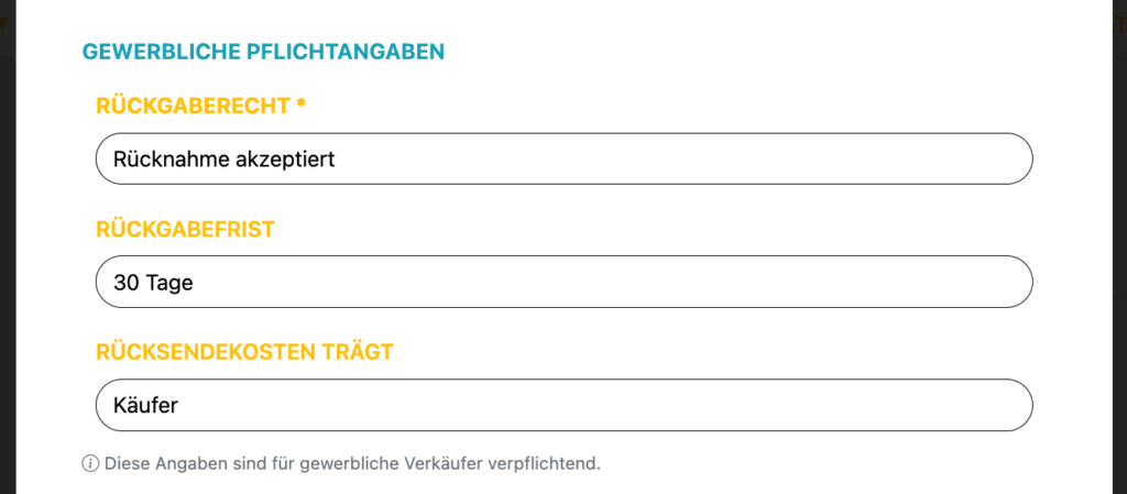 Als gewerblicher Anbieter kannst du bei der Übertragung deiner Anzeigen oder Vorlagen auch das Rückgaberecht angeben.